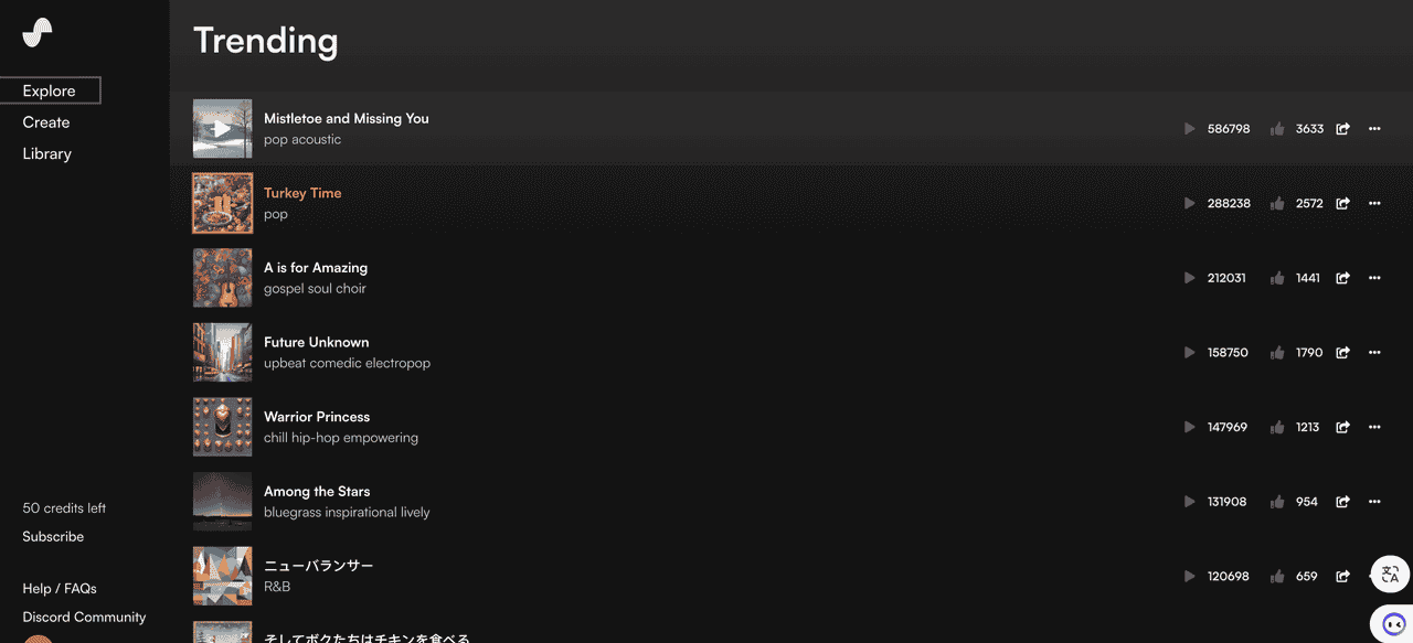 所有用户在加入Suno的Discord时都将自动订阅免费计划。免费计划现在每天包括50个积分(5次Chirps)。