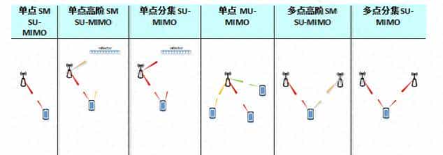 多天线技术是NR的重大组成部分,应支持包括低频和高频带在内的宽频谱范围内的MIMO部署。为了支持灵活和节能的NR操作,NR的MIMO技术应在很大程度上依赖于UE特定的波束赋形,这可以通过使用UE特定解调参考信号(DMRS)和信道状态信息参考信号(CSI-RS)来实现。在NR MIMO技术中针对控制信道和数据信道两者使用UE特定参考信号使得能够在公共框架下进行单点和多点操作的各种传输场景。UE特定参考信号的使用还促进了动态ON/OFF操作,这对于实现系统的高能效以及在无许可/共享许可接入的情况下实现NR支持至关重大。图1说明了NR技术应支持的预期MIMO传输场景,以支持各种用例,包括eMBB的高数据速率吞吐量以及URLLC的高可靠性通信。