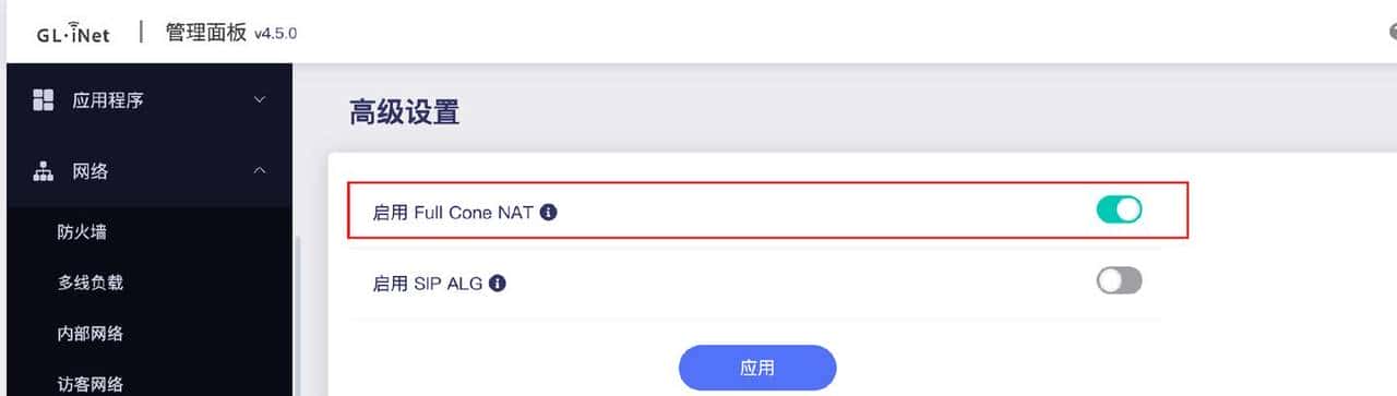 如果还想要进一步低延时,可以开启路由器的”Full Cone NAT”功能,即NAT网络中的『完全圆锥型』,理论上可显著降低延迟,但也会导致安全性较低。