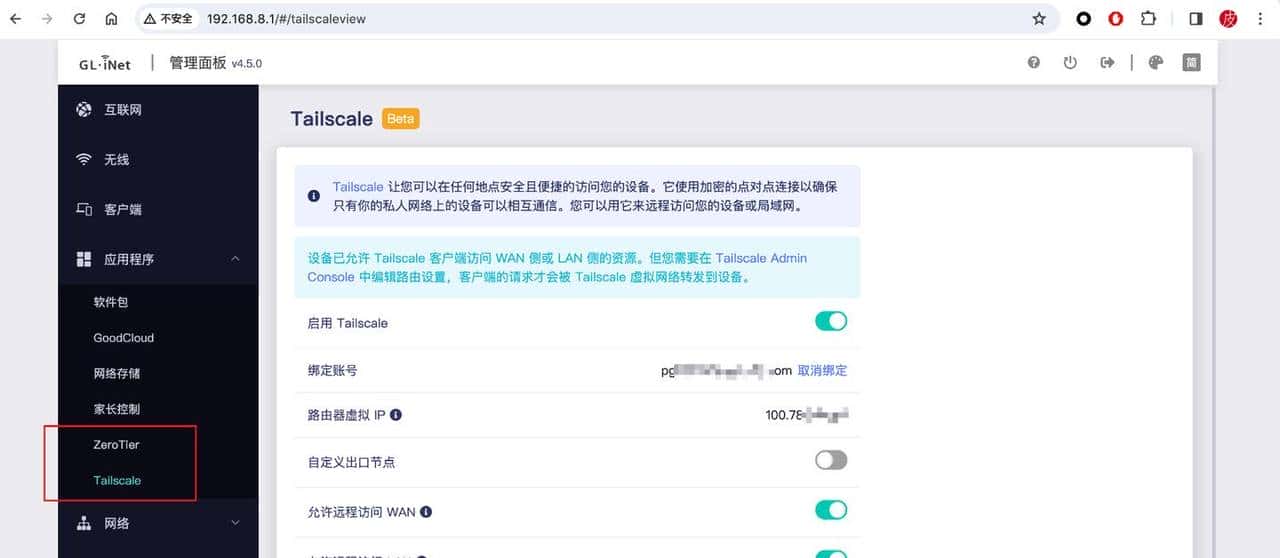 官方固件也加入了使用频次和呼声较高的异地组网方案:TailScale和ZeroTier,对于没有公网IP的同学,我超级推荐你使用这两个异地组网方案实现远程访问内网设备,特别是配合NAS可以实现远程流畅观影,轻松打通点对点,我目前主力使用TailScale进行远程访问,日常使用超级舒服。