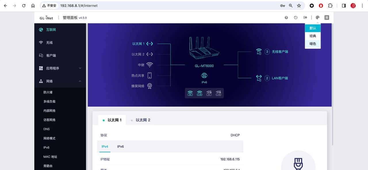 年初入手的GL-MT3000就由于搭载单2.5G网口受到玩家吐槽,这次的GL-MT6000的双2.5G网口终于搭配均衡了,在两个2.5G网口的加持下,可以同时满足内外网突破千兆速度了。