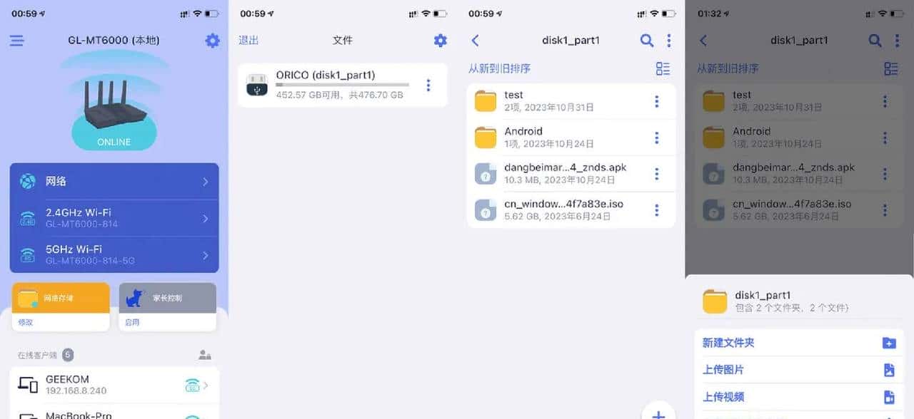 如果是手机,可以配合GL.iNet App实现网络存储管理,可以方便地管理文件,也可以通过App上传手机中的相关文件,基础NAS的功能应有尽有。