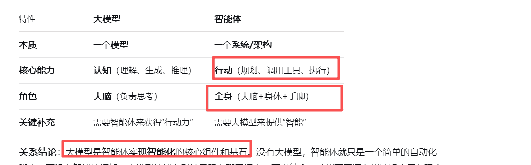 智能体 = 大模型 + 规划能力 + 工具使用 + 记忆机制。