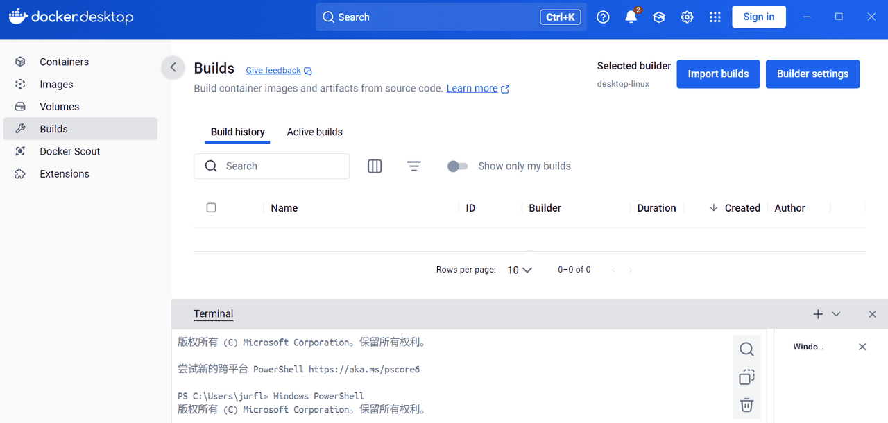 在cmd或者windows powershell中(管理员运行),输入【net start com.docker.service】以启动docker desktop service服务。