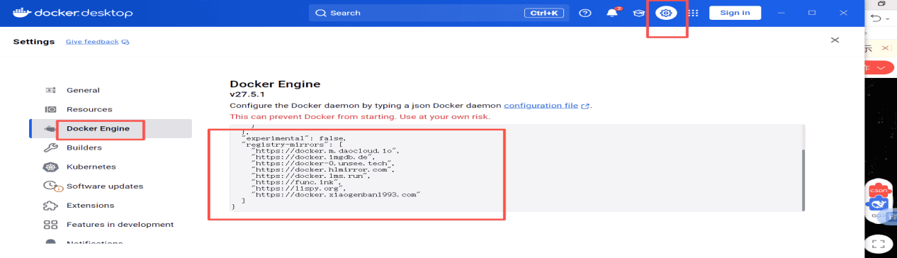 { “builder”: { “gc”: { “defaultKeepStorage”: “20GB”, “enabled”: true } }, “experimental”: false, “registry-mirrors”: [ “https://docker.m.daocloud.io”, “https://docker.imgdb.de”, “https://docker-0.unsee.tech”, “https://docker.hlmirror.com”, “https://docker.1ms.run”, “https://func.ink”, “https://lispy.org”, “https://docker.xiaogenban1993.com” ] } |
