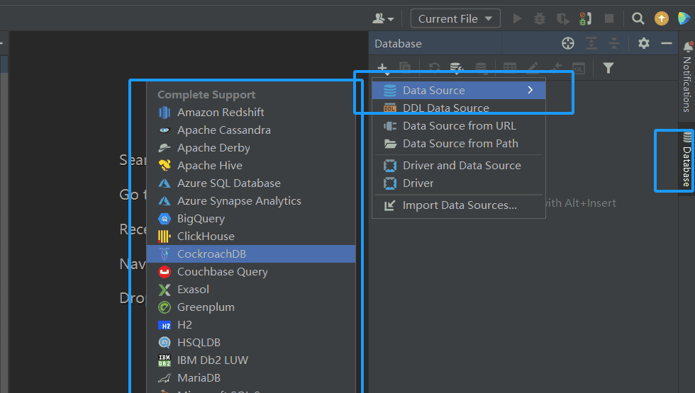选择“Database” -> “Data Source” -> “Add Database”。选择数据库类型(如MySQL、PostgreSQL等)。输入数据库的详细信息,如主机名、端口、数据库名、用户名和密码。点击“Test Connection”测试连接。确认设置后,点击“OK”。