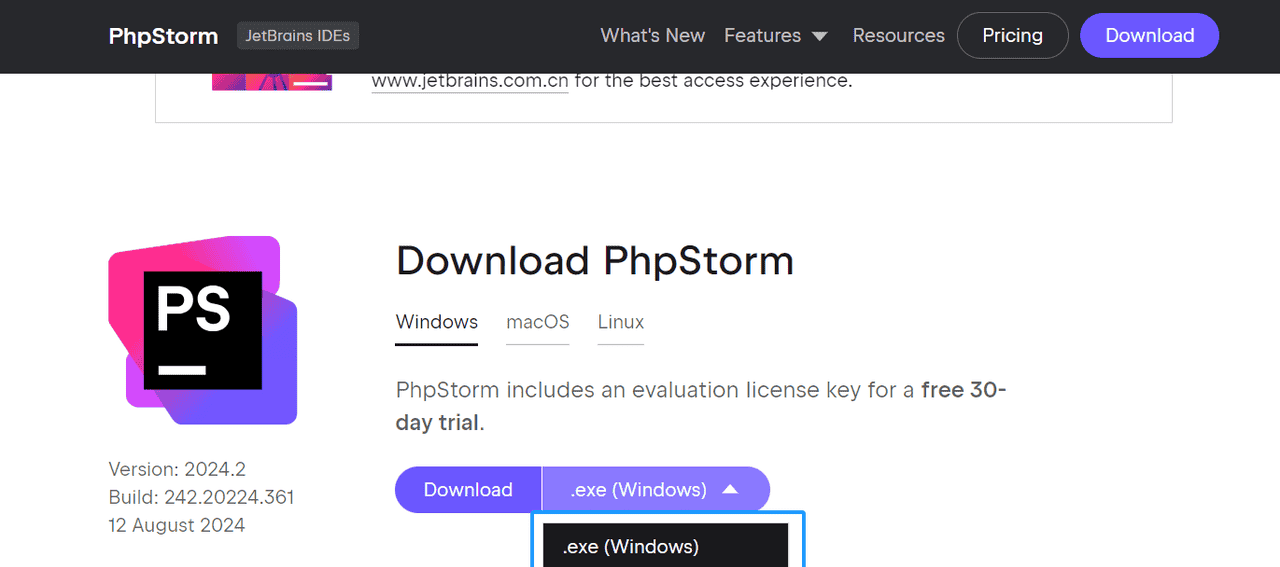 访问JetBrains官网下载最新版本的 PhpStorm。