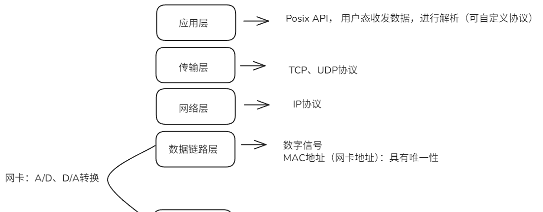 | 数据链路层 | 以太网协议、Wi-Fi 协议 | 对接物理硬件(如网卡),处理数据帧封装、物理信号转换 |