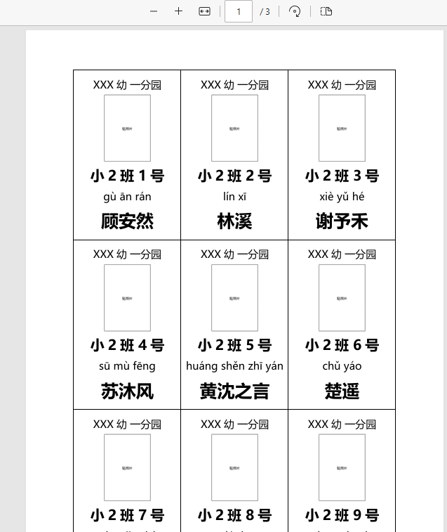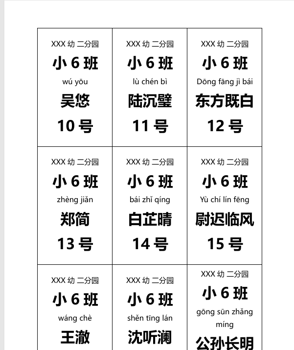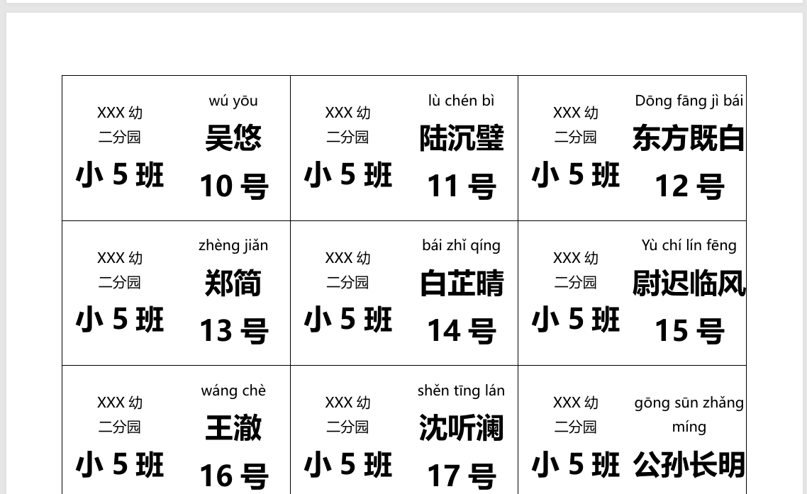 的确,如果插一个人,就要等我重新批量一次,对于班主任教师来说,效率太低(我现在带班,也不能马上用程序批量),最好也能做成PDF打印版本和word修改版,便于教师自己修改操作(word里面改名字,但是没有拼音)