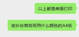 随后组长讨论了每个班级用什么颜色(四种浅色A4纸,小2分到浅蓝色A4)。她随后建议:“这卡片都是字,大人看没问题,小孩子不认识字,最好贴个照片!”