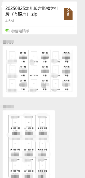 20250911中1班老师另外要了“长方卡套”(组长们讨论时,好像托小班需要,中大班不需要长方卡套)但是这位中班班主任需要更新后的长方卡套名片纸。