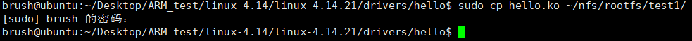 将hello.ko移动到板载根文件目录的中【~/nfs/rootfs/test1】