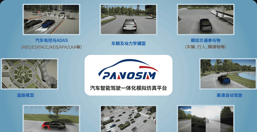 PanoSim是一款自主研发的面向汽车智能驾驶技术与产品研发的一体化仿真与测试平台,集高精度车辆动力学模型、高逼真汽车行驶环境与交通模型、高逼真车载环境传感器模型和丰富的测试场景于一体;支持独立仿真或与Matlab/Simulink 联合仿真,提供包括离线仿真、软实时仿真、实时硬件在环仿真(MIL/SIL/HIL/VIL)、驾驶员在环仿真(RT-DIL Simulation)、数字孪生仿真平台等在内的全流程、一体化解决方案;支持高级驾驶辅助系统(ADAS)、车联网(V2X)和自动驾驶系统(AD)的自动驾驶环境感知、决策规划与控制执行子系统,以及端到端系统的算法研发与测试;也支持生成大量多样化的测试场景和传感器数据,用于模型的增量训练和数据增强。PanoSim具有很强的开放性和拓展性,便于第三方集成和二次开发,支持定制化开发,操作简便友好,已在美国通用汽车、德国戴姆勒汽车、上汽集团和东风汽车、小鹏汽车、地平线等企业和科研院所广泛使用。
