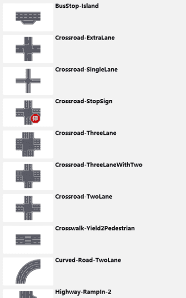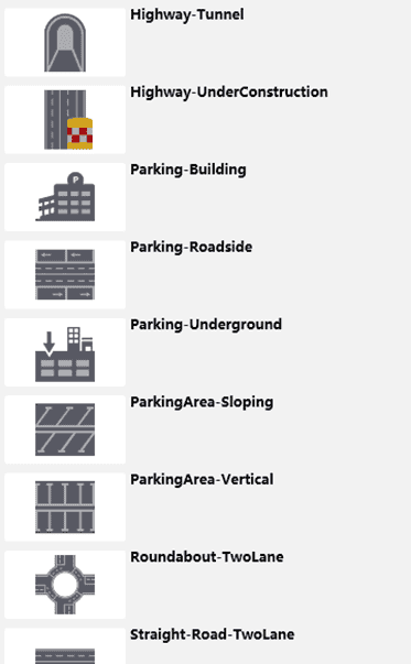 PanoSim也支持以参数化原子地图(Parametric Atomic Map)作为场景构建的基础单元实现测试场地搭建。目前其内置37种原子地图,这些地图作为最小的可编辑单元,涵盖了常见的道路布局和交通场景,例如直道、弯道、交叉口、环岛、隧道、高架桥等。结合考虑了边界匹配、语义匹配、冲突检测等规则的内置算法,支持原子地图自动吸附组合的快速拼接,使用户可以轻松扩展为任意结构和面积的测试场地。与传统的顶点级场景编辑工具(如RoadRunner)相比,这种模块化设计方式大幅降低了搭建复杂场景的时间成本,同时确保场景布局的准确性与一致性。