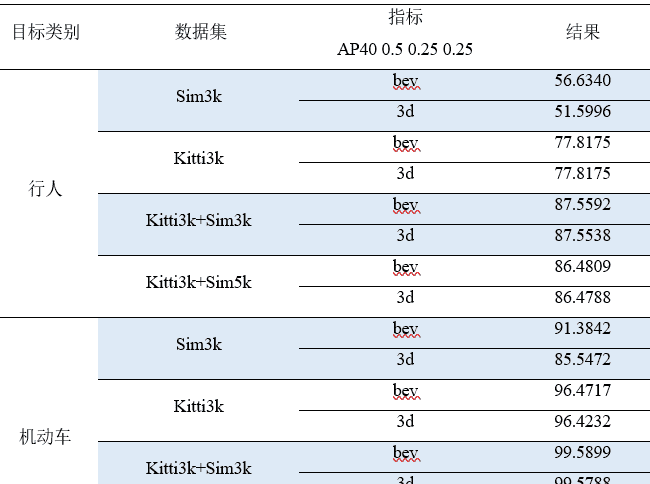 表3 3D目标检测:仿真数据在SECOND模型的验证结果