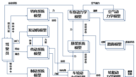 转向系统模型:包括转向管柱、电动助力、齿轮齿条式转向器、转向主销、转向轮等典型转向系统的多刚体动力学建模,包括方向盘转角与扭矩两种控制输入模式,以及后轮转向系统模型;