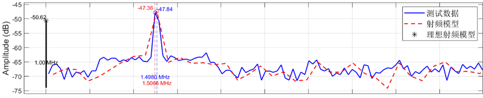 从下图可以看出,基于光线追踪技术的理想雷达射频模型产生的回波信号只是单纯的点频信号,无法体现出雷达射频电路内部各个因素导致的频偏、频谱扩展和幅值的变化。PanoSim的毫米波雷达白盒模型的计算结果与测试结果在主信号的频率和频谱分布上非常接近,主频信号的幅值和噪声的分布也非常相似。