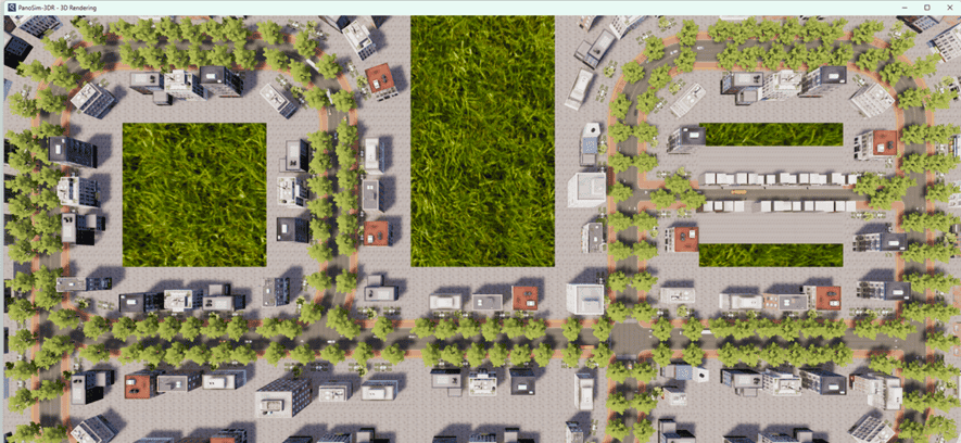 图3 PanoSim生成的城市内建筑、植被、树木仿真效果展示