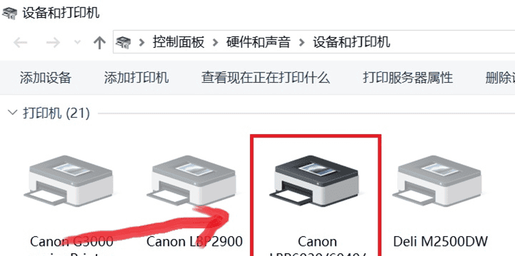 在设备和打印机中,找到我们需要调整的这台佳能LBP6018L黑白激光打印机,然后在这台打印机上右键点击【属性】;