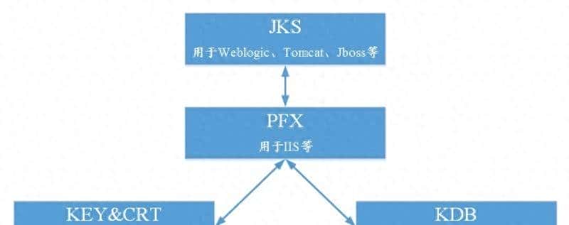 - Tomcat、Weblogic、JBoss等Web服务软件,一般使用Java提供的密码库。通过Keytool工具,生成Java Keystore(JKS)格式的证书文件。