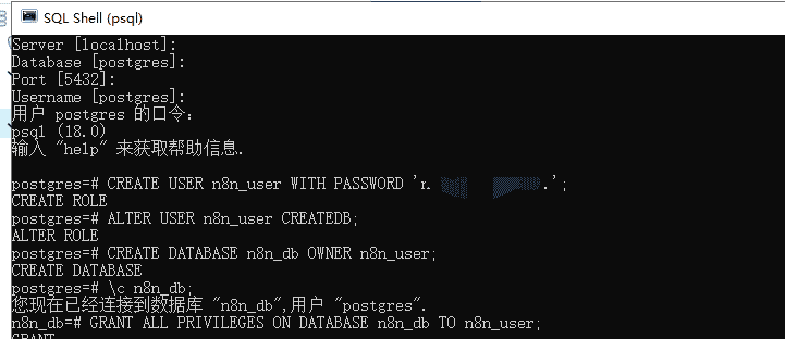 安装完毕后,在配置 PostgreSQL 以对接 n8n 时,命令行(psql)和 pgAdmin 图形界面都可以完成任务。