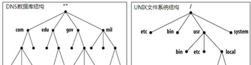 DNS实际上是一个分布式数据库,其层次化结构与UNIX的文件系统结构相类似,呈现为倒置的“树形”,根在顶端。