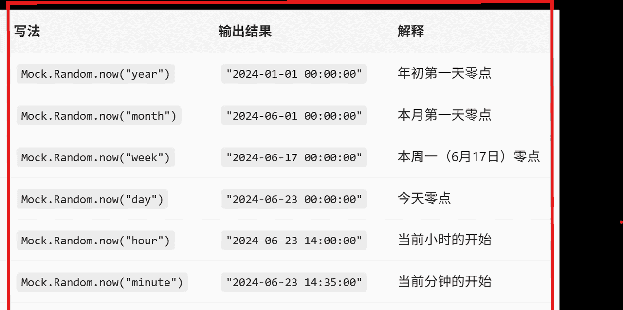 Mock.Random.now() 用来获取当前时间的字符串(而不是随机时间),非常适合模拟“实时发布”、“刚刚创建”的场景。Mock.Random.now() 它返回的是 调用时刻的真实日期和时间字符串,不是随机的,而是“此刻”的时间