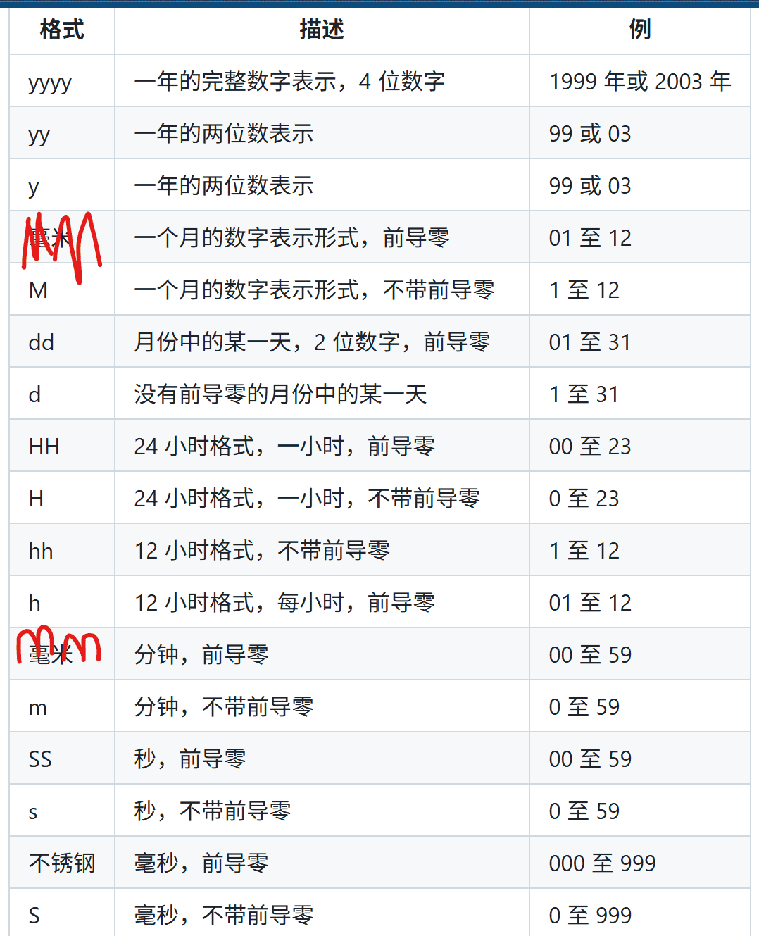 它可以接收参数,那这个参数呢是一个format,这个format它其实是用来格式化这个日期的,我们看到啊,这个format,它可以传的参数有这么多,如下列出来了一张表,