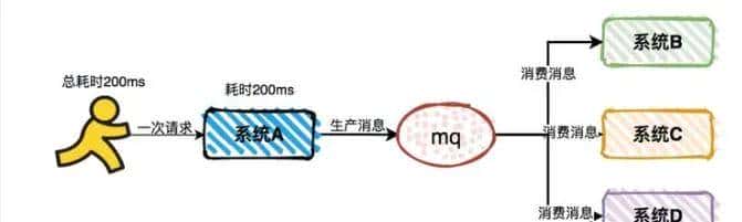 系统A作为消息的生产者,在完成本职工作后,就能直接返回结果了。而无需等待消息消费者的返回,它们最终会独立完成所有的业务功能。