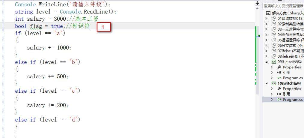 使用if-else if分支结构实现类似的功能感觉有些麻烦,C#又提供了一个根据具体值判定的分支结构 switch