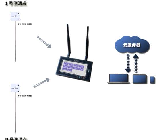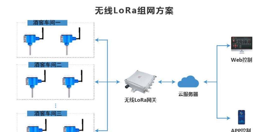 数据传输网络 负责传输温度数据。可采用 LoRa(远距离、点相对分散)、NB-IoT(依赖移动网络、点分散)、5G(高速率、低延迟) 及 RF射频 等方式。部分网络具备自组织能力,可自动寻找最佳传输路径。