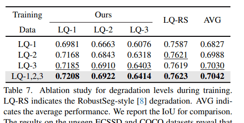 为了全面训练和评估模型,我们构建了LQSeg数据集,包含多种退化类型和级别: