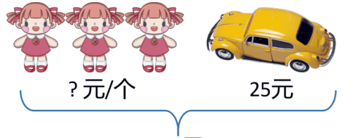 兰兰花52元购买了3个玩偶和1个玩具汽车,玩具汽车的价格是25元,一个玩偶多少元?( )