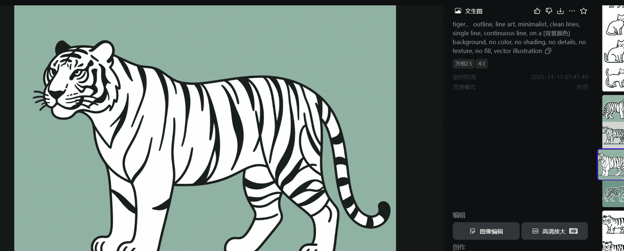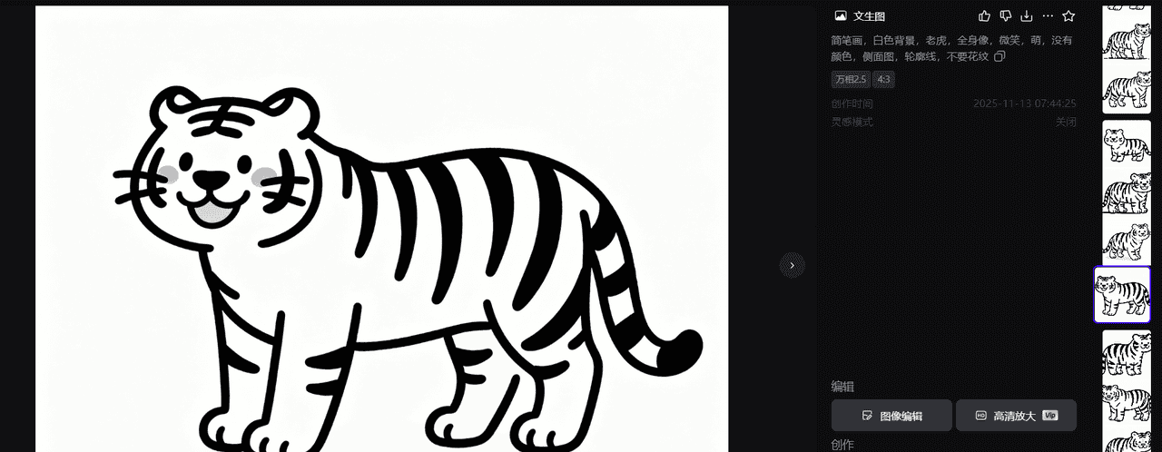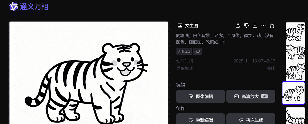 上午我想把今天的通义万相十分用掉。第一位来的小朋友说她喜欢“小老虎”