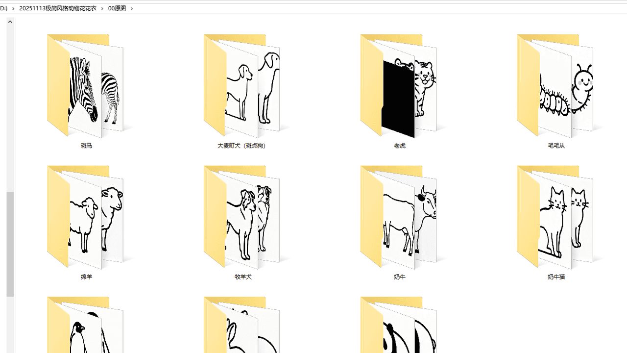 然后我想到《动物花花衣》主题,添加动物皮毛的花纹,如果需要添加黑色,那这个小老虎身上就不能有黑色条纹。