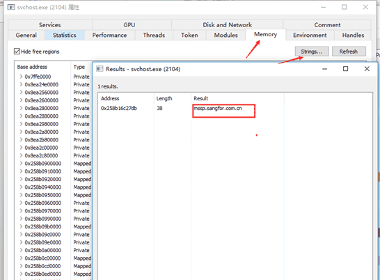 所以需要结合process hacker等工具查看指定进程内存是否确实存在指定字符串信息。