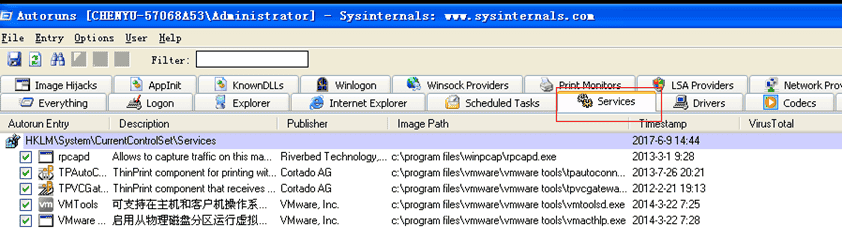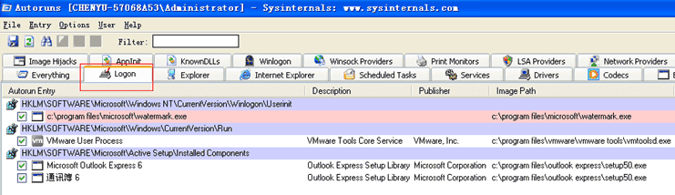 使用autoruns查看