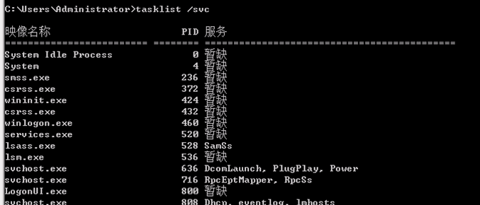 通过tasklist /svc,可以查看每个进程所对应的PID和服务