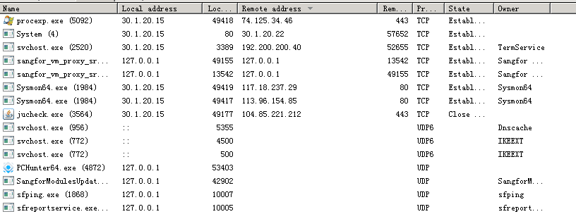 在网络端检测出某个恶意域名或 IP 后,可以在所有系统进程中搜索该域名,帮助定位发起域名连接的进程,从而定位病毒文件。