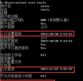 查看用户最后一次登录,修改密码时间,以及账户是否启动。