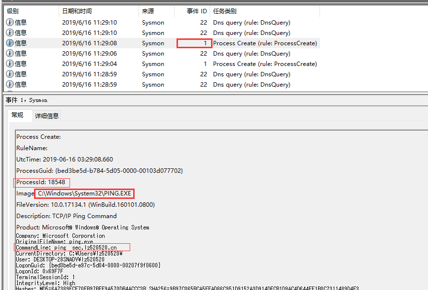 常用的有事件ID 1,监控进程创建,恶意进程的创建,包括他的父进程,PID,执行命令等等。