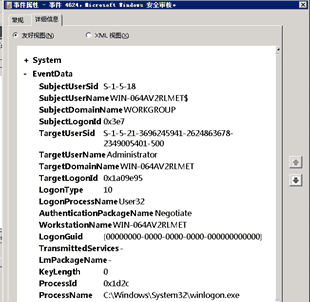 RDP登录日志位于windows安全日志中,登录类型为10,该日志记录了此主机上的所有登录行为。