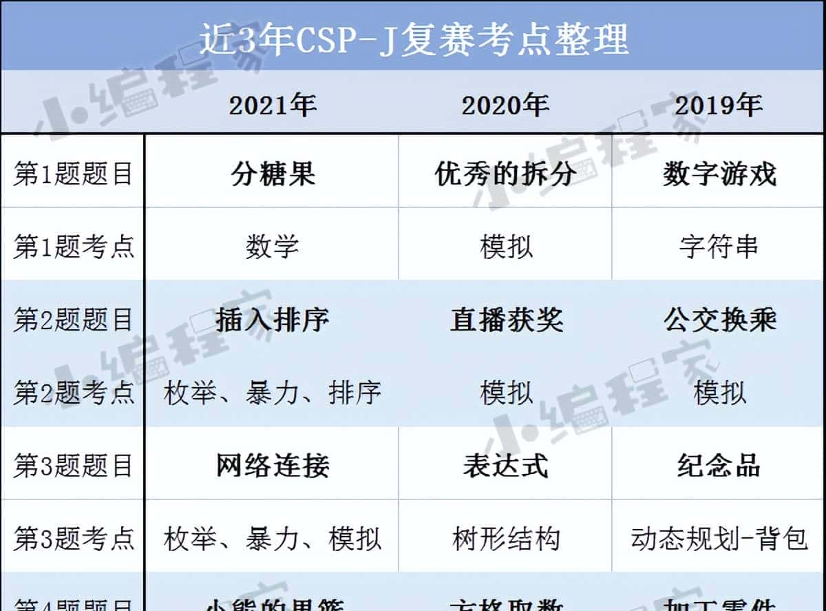 以下是【小编程家】整理的近3年CSP-J/S复赛考点: