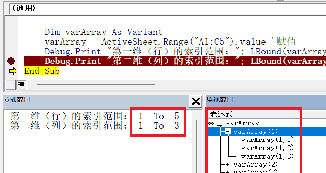 Debug.Print "第一维(行)的索引范围:"; LBound(varArray, 1); " To "; UBound(varArray, 1)