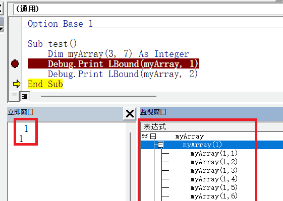 以Dim myArray(3, 7) As Integer为例加以说明,使用Option Base 1的结果如下,默认从1开始,是3行7列