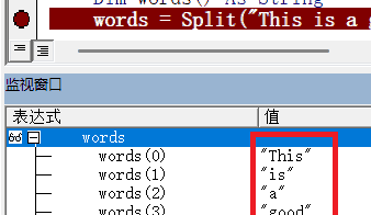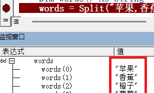 Dim words() As Stringwords = Split("苹果,香蕉,橙子,葡萄", ",")