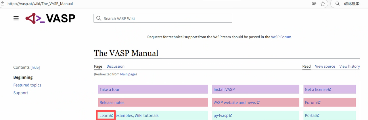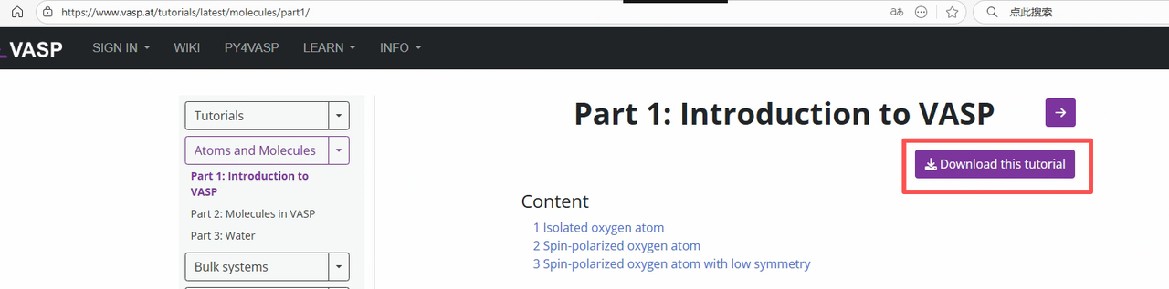 依次点击 main page—learn——Tutorials——Atoms and molecules——Part1: Introduction to vasp——Download this tutorials