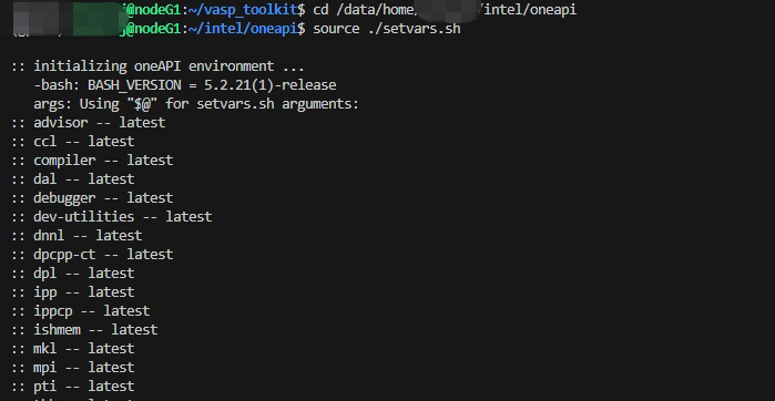 Installation location: /data/home/wzu23cj/intel/oneapi